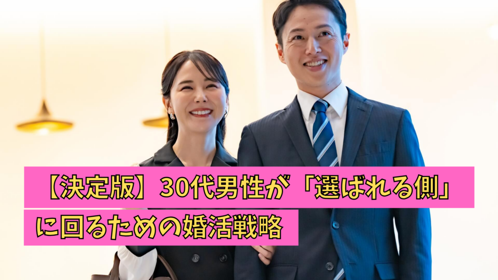 【決定版】30代男性が「選ばれる側」に回るための婚活戦略:最短で結果を出す5つの鉄則「マッチングアプリでいいねが来ない」「2回目のデートに繋がらない」「そもそも何をどう変えればいいか分からない」